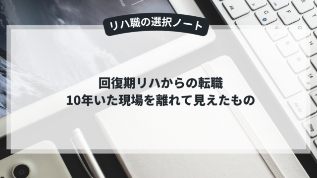 リハ職のスキルは、思っているより「つぶしが利く」ものです。たとえば、回復期で培った家族との関係調整は、介護相談員や生活相談員の仕事にも通じています。評価や計画立案の力は、企業の健康推進担当でも必要とされます。現場を離れることへの不安より、「自分が持っているものが他の場所でも役立つかもしれない」という視点で眺めてみると、横道がぐっと近くなります。